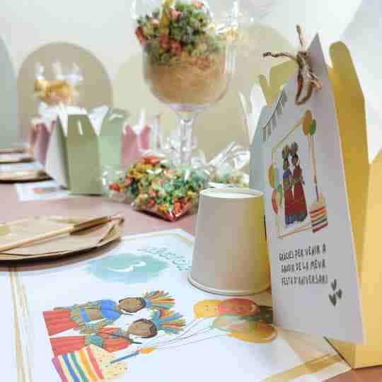 🍽️ Decoración de mesa: vestimos tu mesa con todo tipo de detalles molones a juego con tu temática, servilletas, vasos, caminos de mesa…